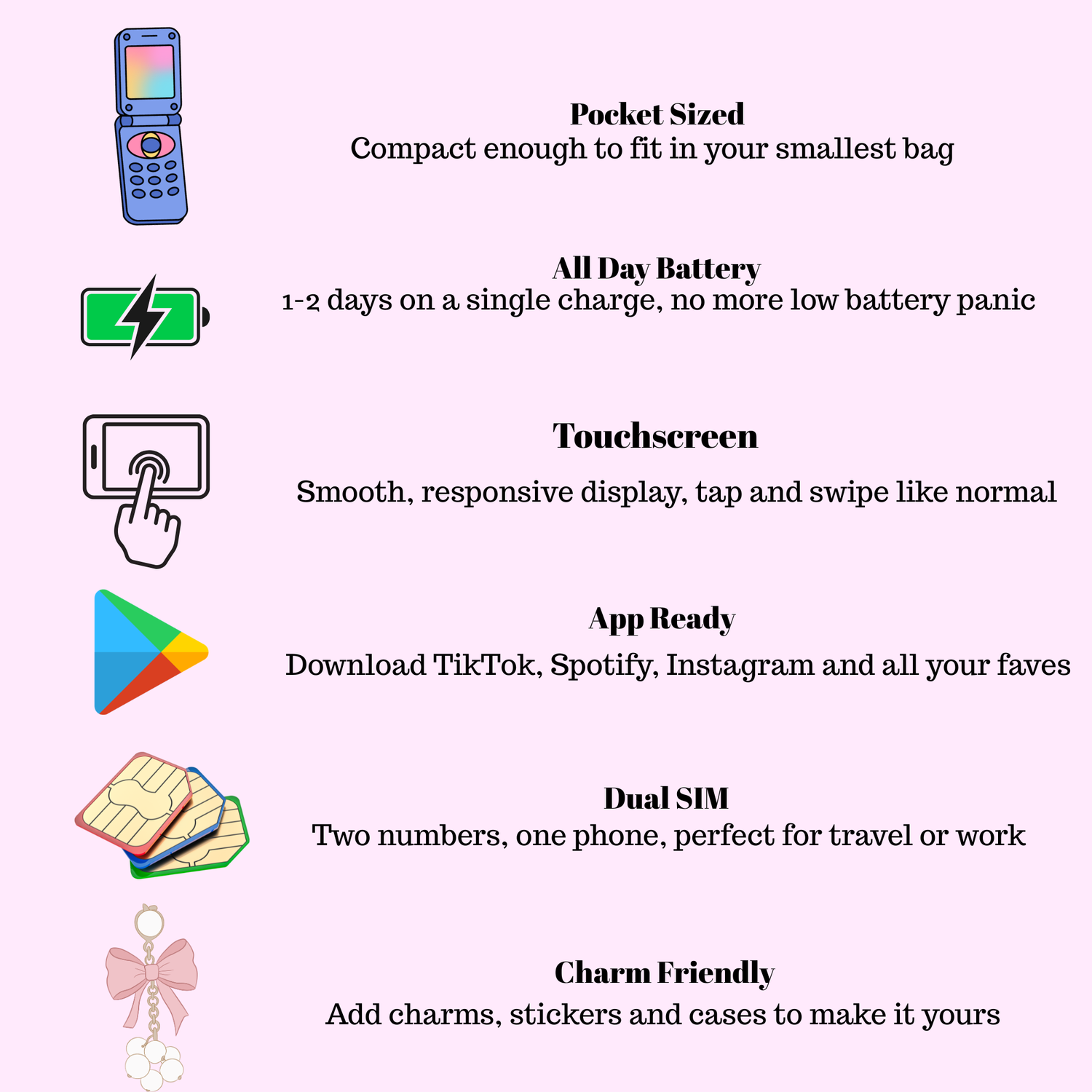 The MoshiFlip™ Phone packs all the power of a regular smartphone into an aesthetic, flip design✨🎀